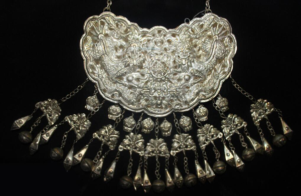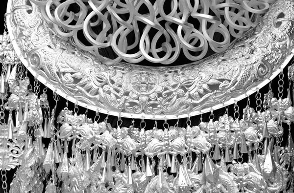 贵州非白银产区,历史上的银饰加工为银元、银锭。也就是说,苗族日出而作,日落而息,周而复始,经年累月,积攒下的银质几乎全都投入了熔炉。正因为如此,各地银饰的银质纯度以当地流行的银币为准。譬如民国时境内是以雷山为界,其北边银料来自大洋,纯度较高,南边来自贰毫,银饰成色较差。20 世后,党和政府充分尊重苗族群众的风俗习惯,每年低价拨给苗族专用银。